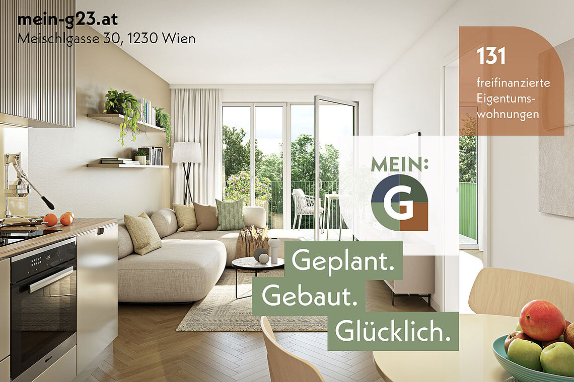 Im Neubauprojekt Mein:G entstehen 131 frei finanzierte Eigentumswohnungen. Top angebunden an die U6 im Süden Wiens, in der Nähe der Naherholungsgebiete Wienerberg, Lainzer Tiergarten oder Perchtoldsdorfer Heide.