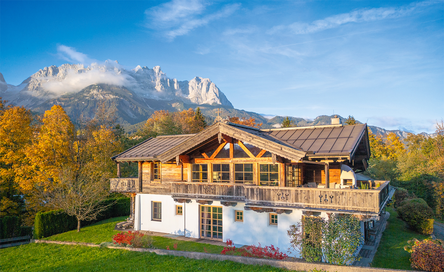Going am Wilden Kaiser: Unweit des charmanten Ortskerns von Going am Wilden Kaiser empfängt dieses Landhaus seine Bewohner mit zeitloser Eleganz und einem unvergleichlichen Wohlgefühl. Klassische Architektur trifft auf durchdachte Raumplanung und helle Wohnräume, die Wärme und Geborgenheit ausstrahlen. Großzügige Schlafzimmer mit eigenen Bädern, eine stilvolle Mastersuite mit Sauna sowie ein gemütlicher Wohnbereich unter dem Sichtdachstuhl laden zum Ankommen und Genießen ein. Hochwertige Materialien, liebevolle Details und ein harmonisches Farbkonzept schaffen den idealen Rahmen für ein Zuhause mit Charakter – ein Ort, an dem sich Tradition und Lebensqualität in bester Balance vereinen.